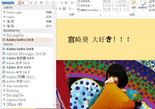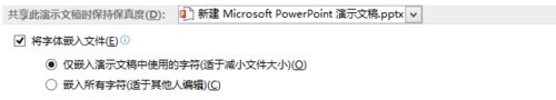 第一种:仅嵌入演示文稿中使用的字符。也就是说只保存了在演示文稿中使用的字符,无法进行全面的修改,只能使用保存的字符。