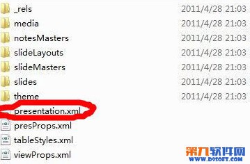 3:按照上面分解PPT后,用记事本打开presentation.xml这个文件