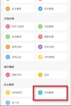 3、接着,找到页面底部的文档瘦身,单击以进入,如下图所示,然后进入下一步。