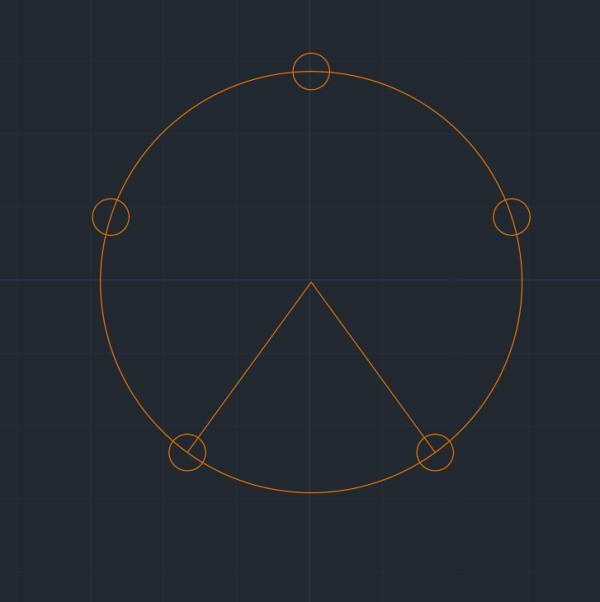 4. 完成后得到5个扇形面域拼成一个圆的面域