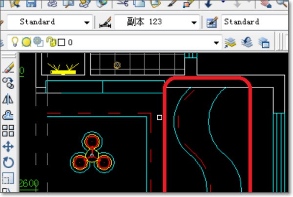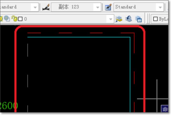 3、用多段线来进行来如下大迟穗图,这里青色表示石膏板,红色表示灯带。