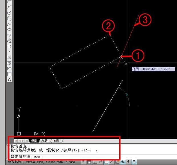 首先,CAD的学习就是需要熟练掌握各种命令。CAD中旋转的命令是RO。一般情况下,对于精度要求不高的图纸,我们只需要在命令栏里面输入ro命令之后,设置好旋转的基点,用鼠标拖拽到需要的位置就可以了,效果如下图所示: