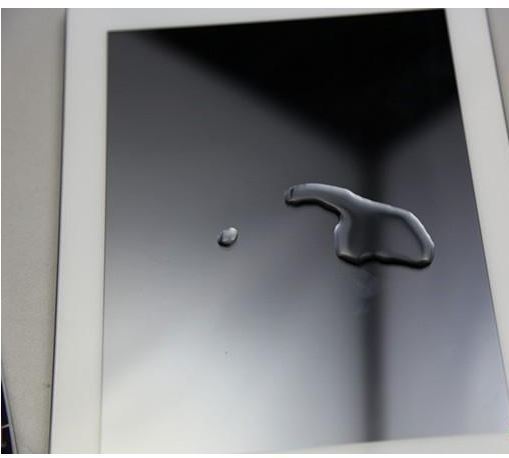 查看苹果手机屏幕是否原装屏,可以再屏幕上面滴上水滴来检查。具体效果图如下: