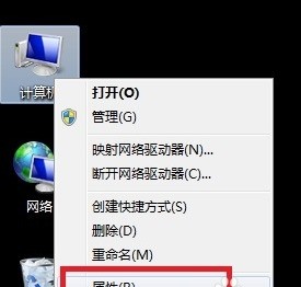 在桌面右键点击"计算机",选择”属性“。