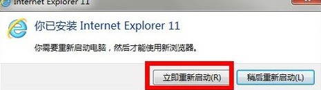 安装完成出现下面对话框,选择立即重新启动电脑!完成安讲心京挥及底装!重新启动后IE已经是11版本了。