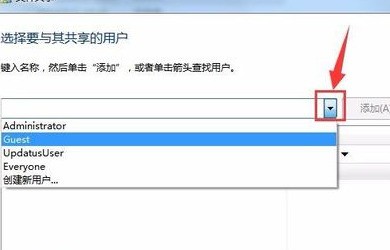 3.然后回到网络共享中心,单击Windows防火墙,并关闭防火墙。右键单击该文件夹你想- >属性- >分享分享,然后单击“共享岁手”。单击箭头选择Guest用户,然后单击add,如下图所示。