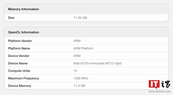 GPU:Immortalis-G720 MC12,频率 1300 MHz