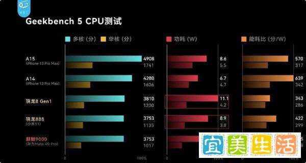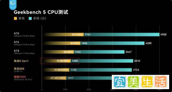 一、骁龙8 Gen 1技术表现:性能提升有限,功耗问题突出CPU性能提升微弱:根据极客湾测试,骁龙8 Gen 1在Geekbench 5中的单核/多核成绩与骁龙888、麒麟9000差距不大,单核分数甚至低于2019年的苹果A13,多核表现也弱于近两年的A14和A15。