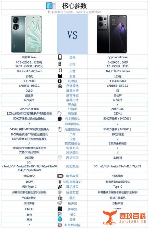 价格更低:OPPO Reno8 Pro+起售价较荣耀70 Pro+低约300-500元,性价比优势明显,适合预算有限的用户。