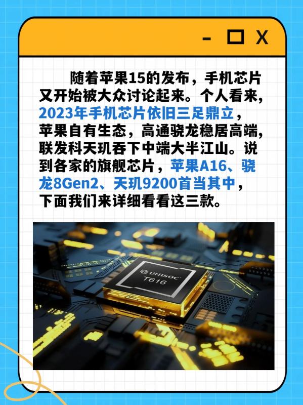 说到各家的旗舰芯片,苹果A16、骁龙8Gen2、天玑9200首当其中,下面我们来详细看看这三款。