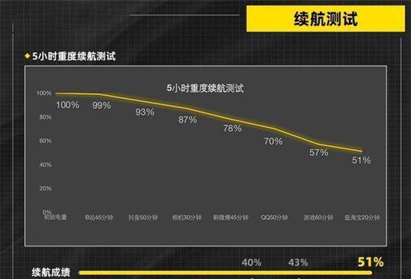 45分钟B站1080P视频播放50分钟抖音短视频浏览30分钟1080P相机录制45分钟微博浏览50分钟QQ聊天60分钟《王者荣耀》超高帧率游戏20分钟淘宝推荐页信息流浏览
