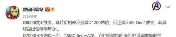 天玑9000套片价格翻倍:据微博博主@数码闲聊站消息,天玑9000套片价格约为前代天玑1200的两倍。尽管仍低于骁龙8 Gen1,但成本显著增加已成事实。