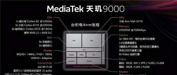 除了CPU和GPU之外,天玑9000在能效管理方面也做得非常出色。它采用了高能效的第5代APU590和高性能的18位HDR-ISP图像信号处理器Imagiq 790,这些技术的加入使得天玑9000在性能提升和能耗降低方面都有着非常出色的表现。