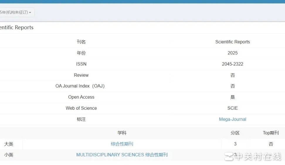 2025年中科院期刊分区表正式发布:Scientific Reports由二区降至三区,Nature Communications稳居一区,未出现降级。
