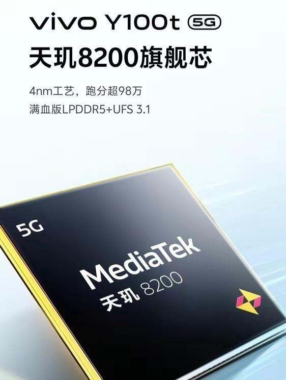 vivo Y100t是一款定位中端市场的高性价比机型,凭借天玑8200芯片、LCD屏幕、120W快充等配置,成为千元机市场的热门选择。以下是其核心特性详解: