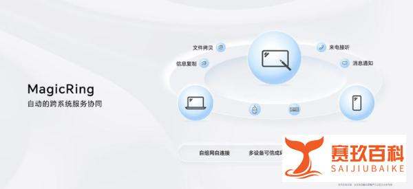 MagicRing信任环:平板与手机、PC自动互联,支持键鼠共享、通知同步、通话接续等功能。