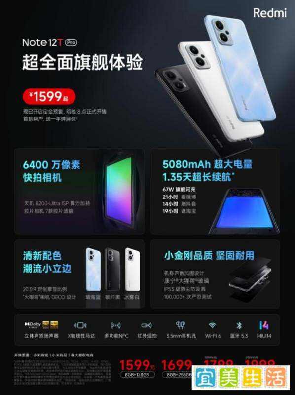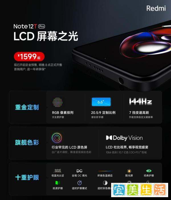 Redmi Note12T Pro是一款主打LCD屏幕与高性能配置的中端机型,起售价1599元,12+512GB顶配版售价1999元,核心亮点包括天玑8200-Ultra处理器、顶级LCD屏及高性价比存储组合。