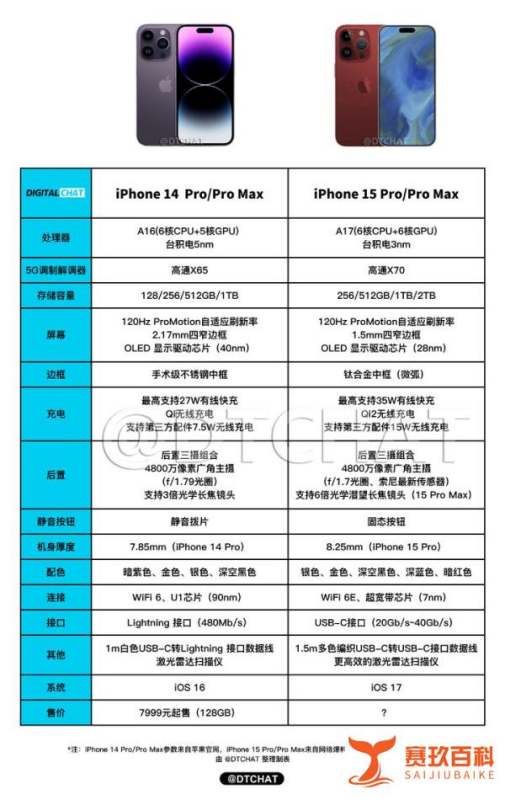 处理器迭代至3nm工艺的A17,功耗控制提升显著,续航表现值得期待。