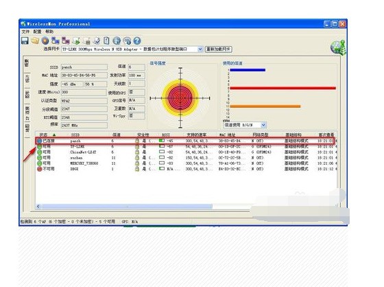 是不是这种现象,可以借助个工具来查看,百度搜索wirelessMON,搜索到后安装运行。