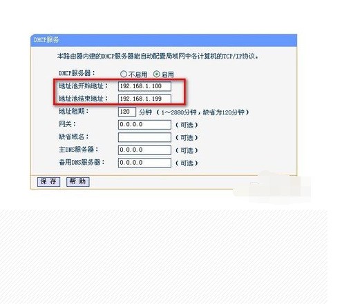 3、如图,将地址池地址重设一下,排除开之前设过的静态IP地址。点保存就可以了。