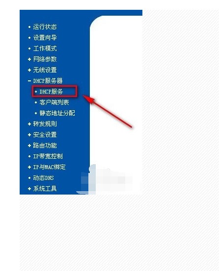 这时我们进入无线中由器,点开左侧的DHCP服务器,点开DHCP服务。