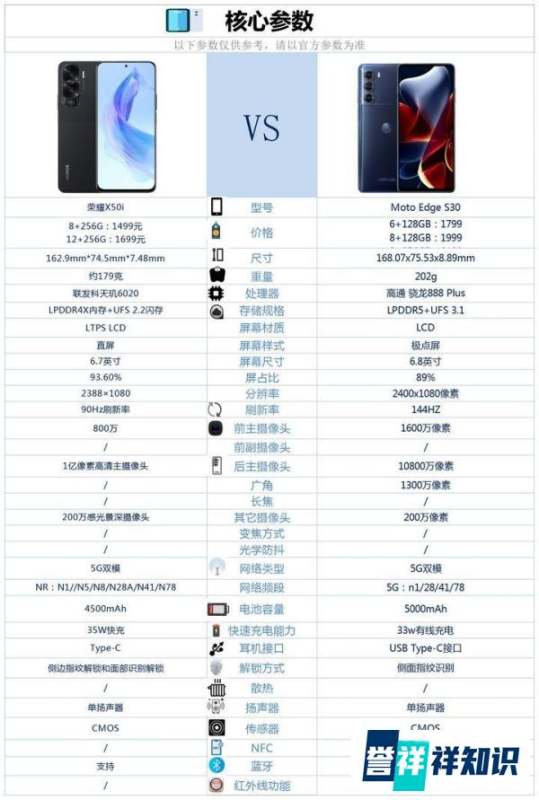 若注重轻薄设计、高像素拍照和日常流畅体验,推荐选择荣耀X50i;若追求极致性能、高刷新率屏幕和长续航,摩托罗拉edgeS30更合适。 以下是具体对比分析: