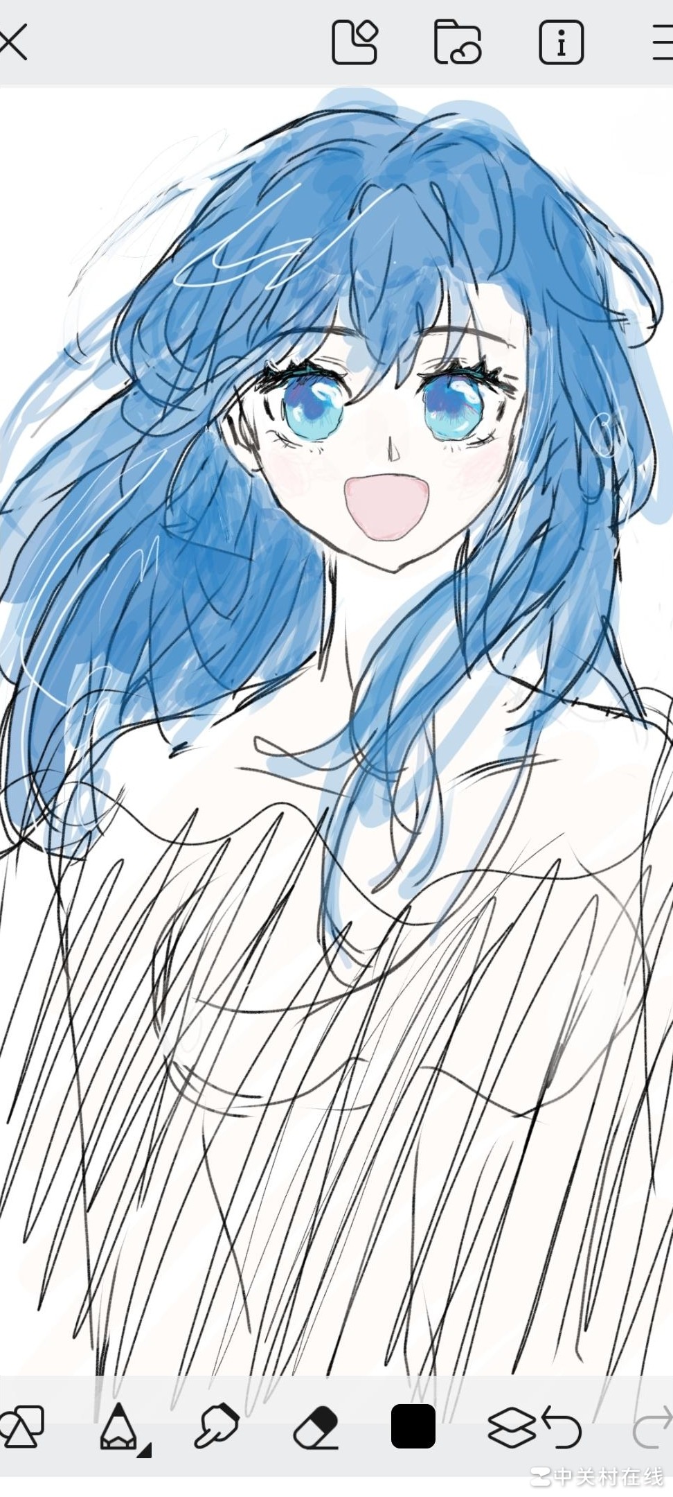 这是我初次尝试绘制头发,上色全凭直觉搭配,虽明白发丝有深浅与明暗变化,却不知如何合理运用。随着绘制深入,效果反而越来越不理想。此前头发的翻转结构也显得生硬别扭,反复修改后才稍显自然。更令人困惑的是,完成后的整体观感中,左右两侧头发总似不够对称,形态与走向缺乏协调统一。