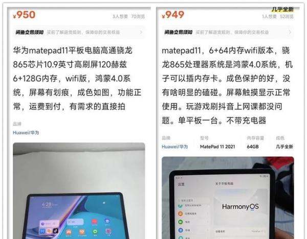 存储版本与价格:提供4G+128G、6G+64G、6G+128G、6G+256G、8G+128G等多种组合。其中6G+128G版本二手均价约一千元出头,最低950元可购入;6G+64G版本预算900多元即可满足需求。相比同价位骁龙870平板(均价1200元以上),MatePad 11在性能差距不大的情况下价格更低,且具备鸿蒙系统升级潜力。