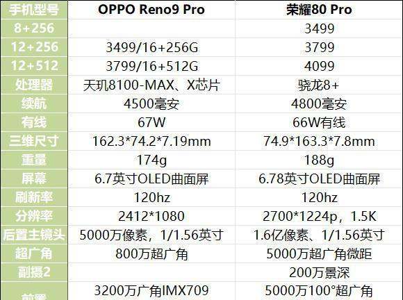 对于OPPO Reno9 Pro和荣耀80 Pro的选择,两款机型定位相同,价格相近,都具备自拍效果好、颜值高、手感轻盈的特点。以下是两款机型的详细对比: