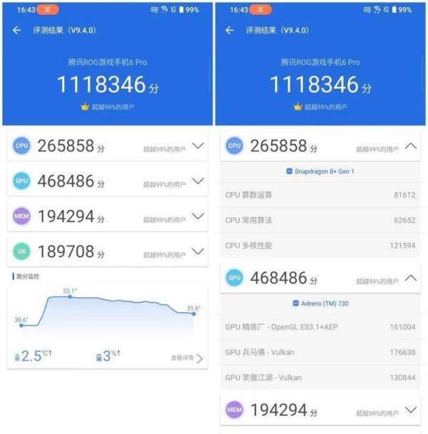 (图:骁龙8+在ROG6游戏手机中的性能表现)