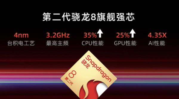 而骁龙8Gen 2处理器是2022年年底才面世的,综合性能排名甚至超过了苹果A15处理器。它同样采用台积电4nm制程工艺,但采用了全新核心构架,CPU规格为1颗3.19GHz Cortex-X3超大核,2颗2.80GHz A715大核,2颗2.80GHz A710大核,3颗2.02GHz A510小核;GPU规格为Adreno 740。根据GeekBench 5的数据显示,骁龙8 Gen 2单核为1490+分,多核5200+分,对比上一代CPU性能提升高达35%。根据曼哈顿3.1功率跑分是226FPS,功耗为7.53W,对比上一代GPU性能提升25%。