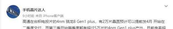 高通骁龙8 Gen1 Plus(sm8475)预计二季度起交付,采用台积电4nm工艺,良率超70%,性能有望进一步提升,或成下半年安卓旗舰标配。
