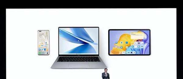 在官方演示中,通过MagicOS 7.0系统,荣耀的手机、平板与笔记本实现了三通互联。用户能够直接使用笔记本鼠标将手机文件拖拽至笔记本,或将笔记本文件拖拽至平板。同时,用户也可以使用笔记本,将手机上的文件跨过笔记本,直接拖拽至平板中,实现了一只鼠标操纵三台不同的终端。
