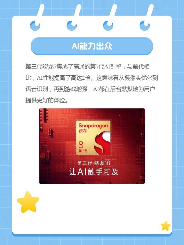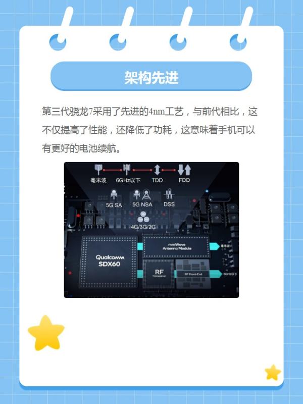作为首个支持2亿像素照片拍摄的7系平台,骁龙7移动平台基于14-bit三ISP打造,支持单帧逐行HDR特性,在画质上相比上一代的骁龙778G有明显提升。