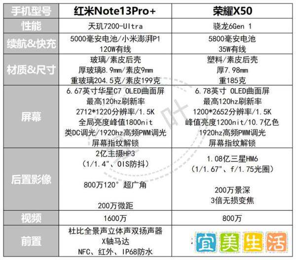 若追求综合体验,红米Note13Pro+更值得选择;若更看重续航和手感且预算有限,荣耀X50是更优解。以下是具体分析: