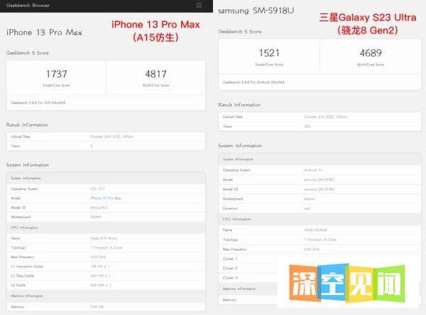 A16:搭载A16芯片的iPhone 14 Pro Max跑分为单核1889,多核5582,骁龙8 Gen2在单核和多核成绩上分别落后24%和19%,差距明显。