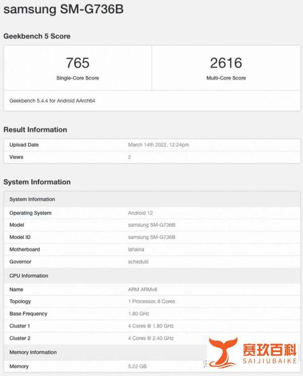 三星Galaxy Xcover Pro 2曝光三防性能与处理器:作为Xcover Pro续作,型号SM-G736B,搭载骁龙778G处理器,Geekbench单核跑分765、多核2616,配备6GB内存,性能达中端机型主流水平,在三防手机中属高配置。