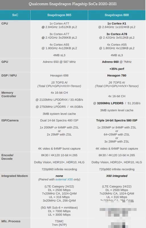 865:支持4K/8K视频录制、Wi-Fi 6、LPDDR5内存等旗舰手机功能。