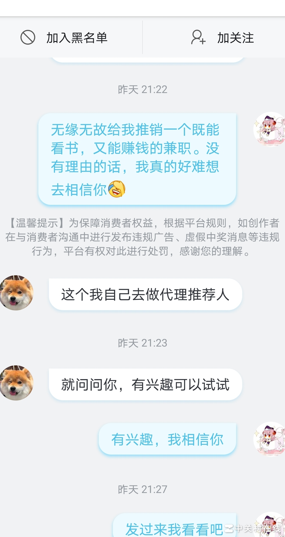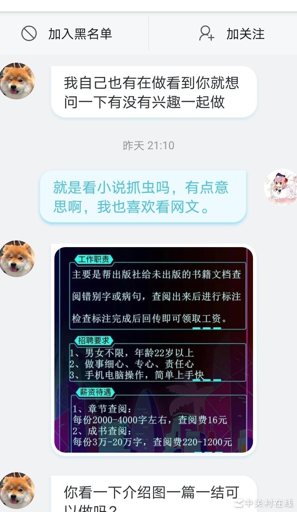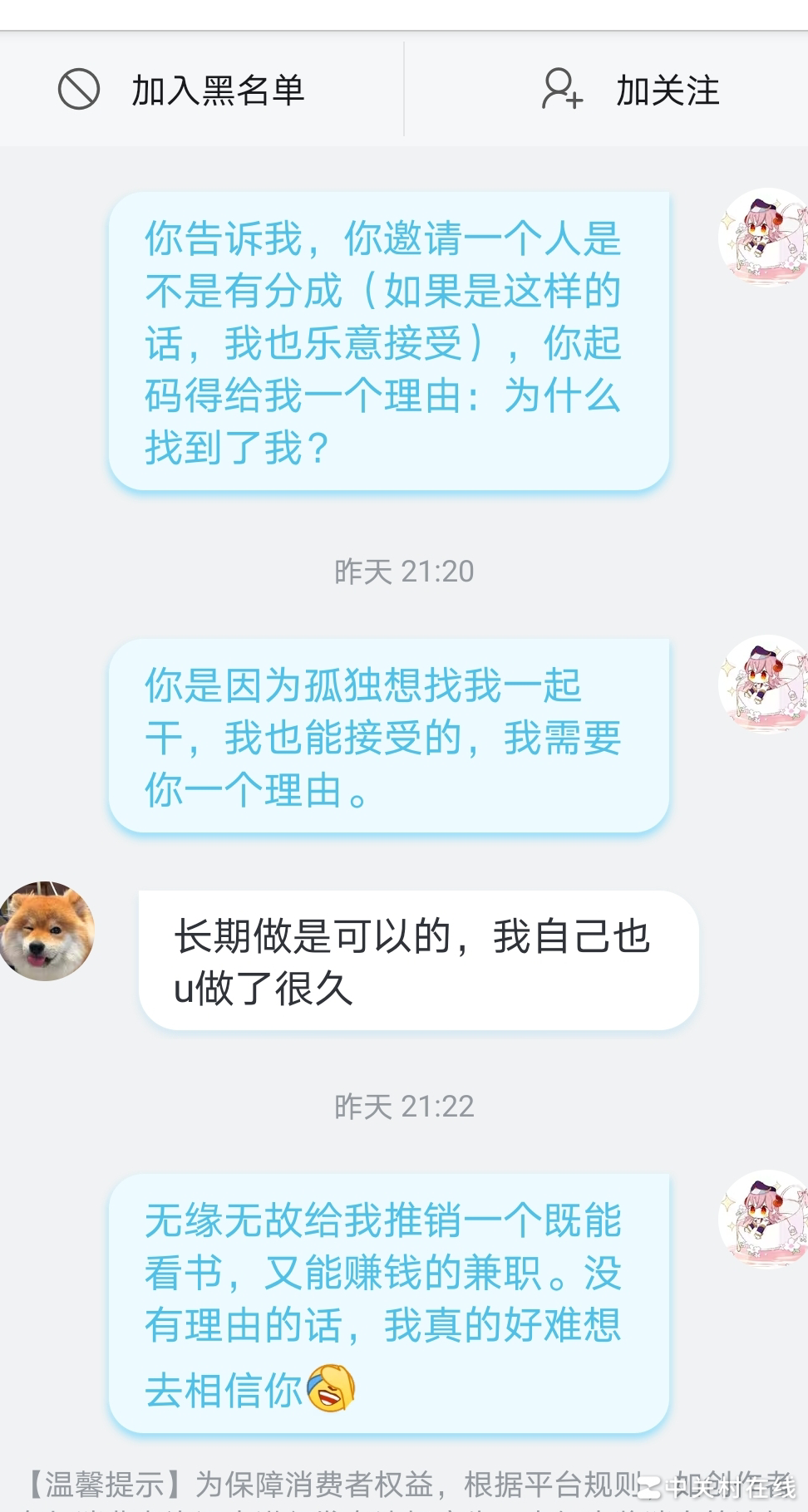 这个二级号(UID:2123694020)突然联系我,询问是否愿意了解书籍批注类兼职工作。