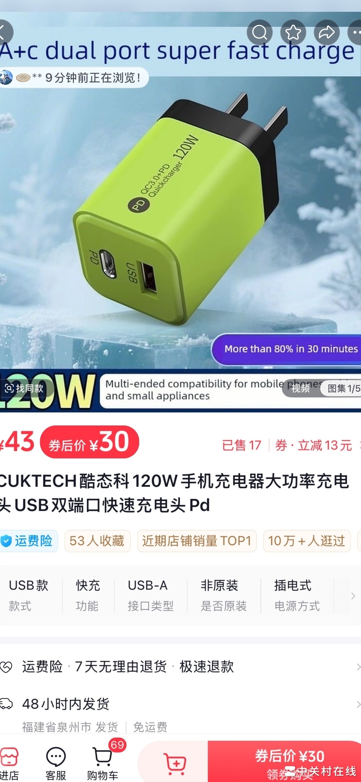 酷态科120W充电头是正品吗?
