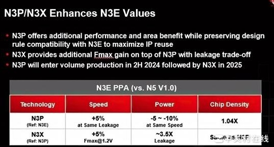 据悉,N3P是N3E工艺的升级版本,在能效与晶体管密度方面均有提升。相较N3E,其性能提高10%,功耗降低16%。