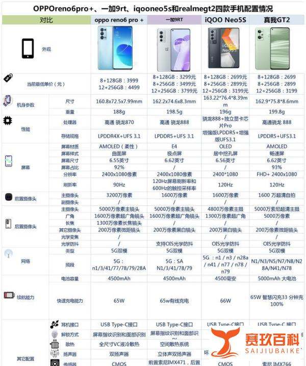 五、其他功能OPPO Reno6 Pro+:支持全尺寸VC液冷散热、双扬声器、NFC、线性马达,游戏体验和日常使用舒适度较高。OPPO Reno6 Pro:缺少液冷散热,但保留双扬声器和NFC,性价比更高。一加8 Pro:支持IP68防水、无线充电、立体声双扬声器,功能全面,但机身较重(199g)。