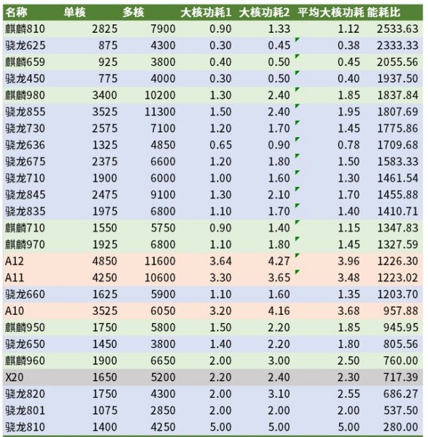 2023年7月手机CPU功耗排行: