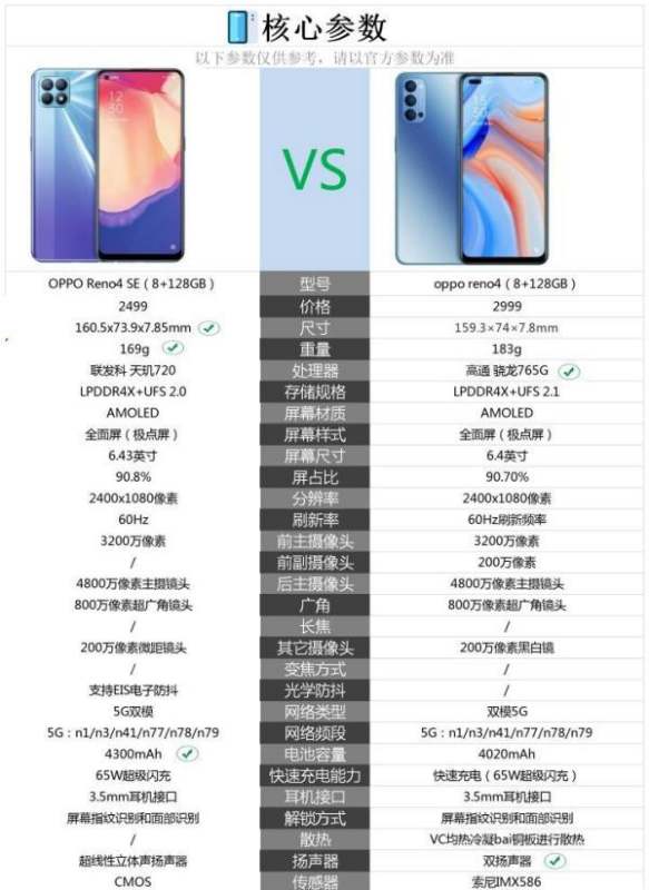 小结:同为8GB+128GB版本,OPPO Reno4比OPPO Reno4 SE贵500元,但考虑到其整体性能和功能,这500元的差价是值得的。