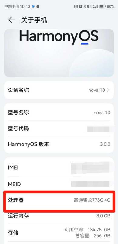 在关于手机界面,找到处理器:进入“关于手机”界面后,界面会显示手机的各种信息,如型号、版本号、IMEI号等。在这些信息中,找到“处理器”这一项,就可以看到手机所使用的处理器型号。例如,华为nova10使用的就是高通骁龙778G处理器。
