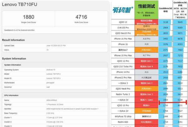 GeekBench 6单核1880/多核4716,性能稍强于骁龙8+,明显弱于骁龙8 Gen 2/骁龙8s Gen 3/骁龙7+ Gen 3。