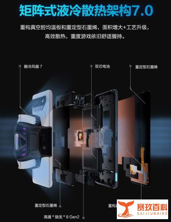 极致散热:Pro版独享酷冷风动阀设计矩阵式液冷散热架构7.0 Plus:腾讯ROG游戏手机7 Pro新增酷冷风洞系统,机身背面左侧中间位置搭载业内首创的酷冷风洞动设计。结构设计:由50多个精密零件构成,采用高扭力步进式马达,内置防跌落机制,避免碰损内部结构,提升使用寿命。散热原理:连接酷冷风扇7后,酷冷风动阀自动打开,将冷却气流直接带至鳍片式微型真空腔均温板,通过冷风对流对SoC实现快速降温。