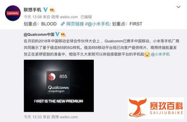 高通官微发布消息并艾特小米,小米回应“First”联想的“4G版首发”与争议:联想在12月18日的发布会上推出了搭载骁龙855的联想Z5s Pro GT版,但该机型为4G手机,并非5G版本。尽管联想成为“首部搭载骁龙855的手机”,但高通官方未对此进行宣传,且其重点始终在5G技术上。联想后续转发小米微博并评论“划重点‘BLOOD’”,被网友解读为蹭热度,因其未涉及5G样机的核心竞争。