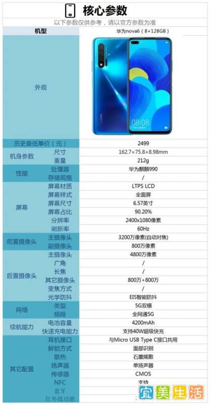 五、购买建议合适场景:若需一台备用机或给长辈使用,华为nova6的5G能力、长续航及易用系统是加分项。谨慎场景:若追求极致性能或高刷屏幕,可考虑同价位红米、realme等品牌机型。价格参考:1806元为第三方渠道优惠价,需确认是否为全新机及保修政策。