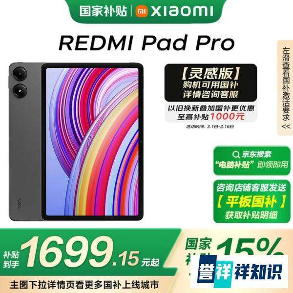 适用人群:追求大屏沉浸体验、需高性能处理复杂任务的用户,如设计师、视频创作者。3. REDMI Pad Pro 12.1寸 2.5K 120Hz平板